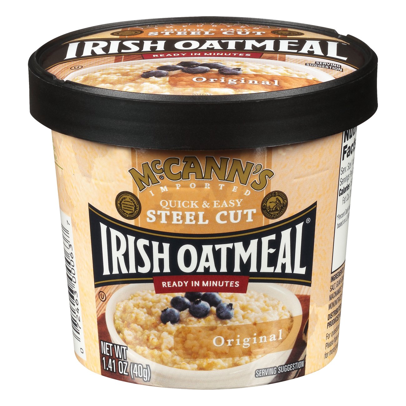 McCann's ® Traditional Steel Cut Irish Oatmeal McCann's® Traditional Steel Cut Irish Oatmeal For over 150 years, McCann's® has been warming the hearts, minds and souls of consumers with its classic Steel Cut Irish Oatmeal. Consumers from around the world can enjoy the rich texture and nutty flavor that is uniquely McCann's. 28 oz Nutrition Facts